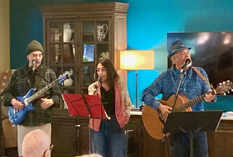 Eze Duzzit loves to interpret artists such as the Beatles, Paul Simon, Joni Mitchell and James Taylor and incorporates some of their originals as well. The three have come home together from differing backgrounds – Ivan Lee from Seattle, Connie Wetzell – Jones from Nashville (where a jazz vocal band was her forte!) And homegrown Sonoman Dave Monterey.